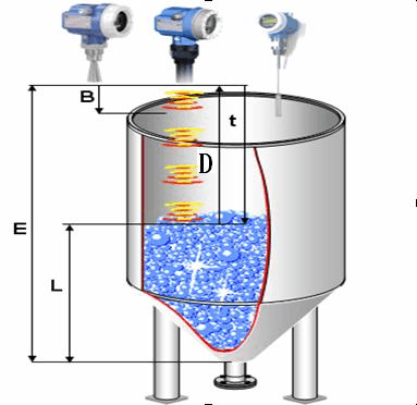 D:測量值,這是雷達天線到液位的距離,這是雷達直接檢測的距離。 L:液位,雷達無法直接檢測液位高度,液位是由空標值減去測量值來得到。